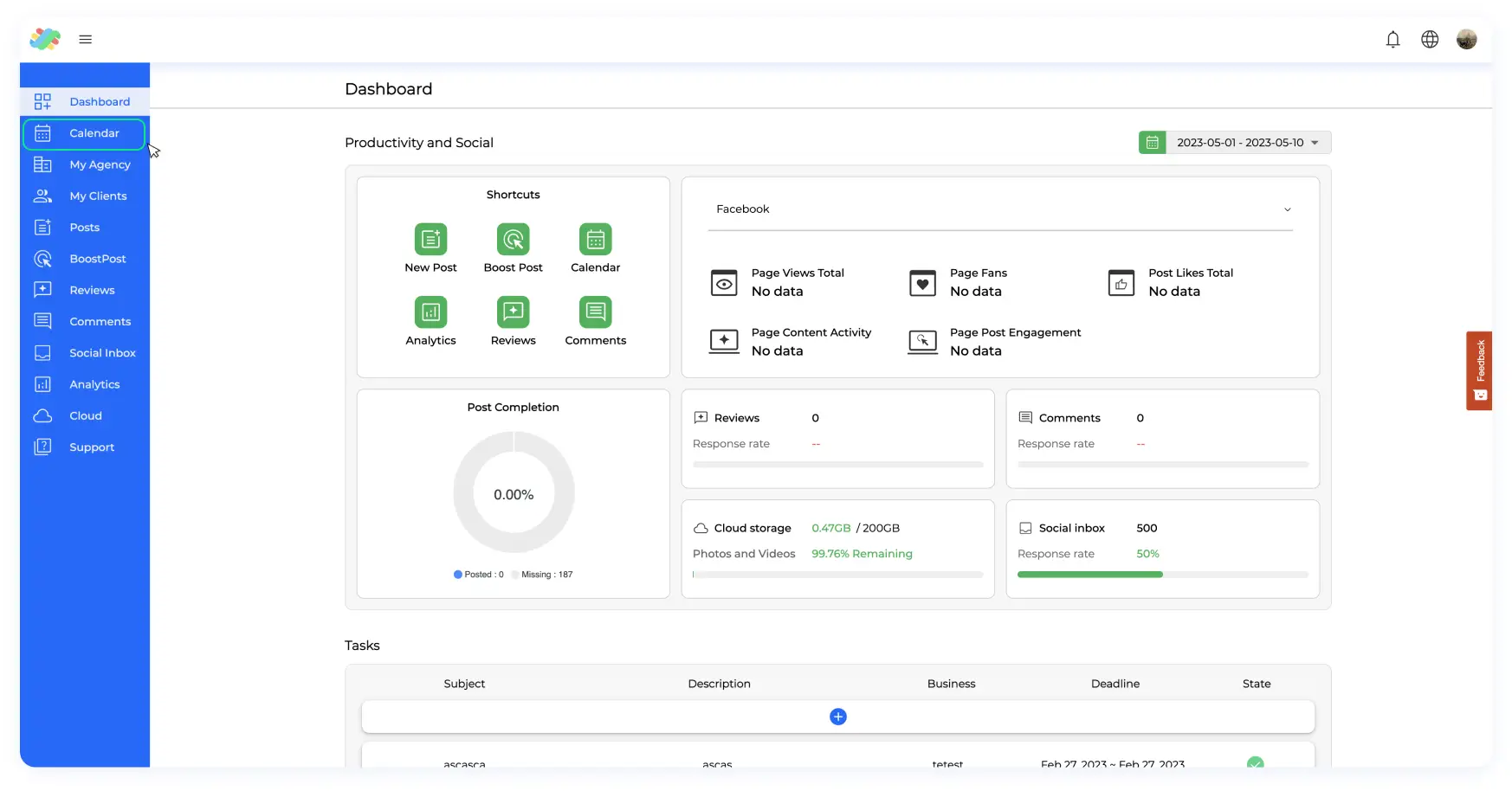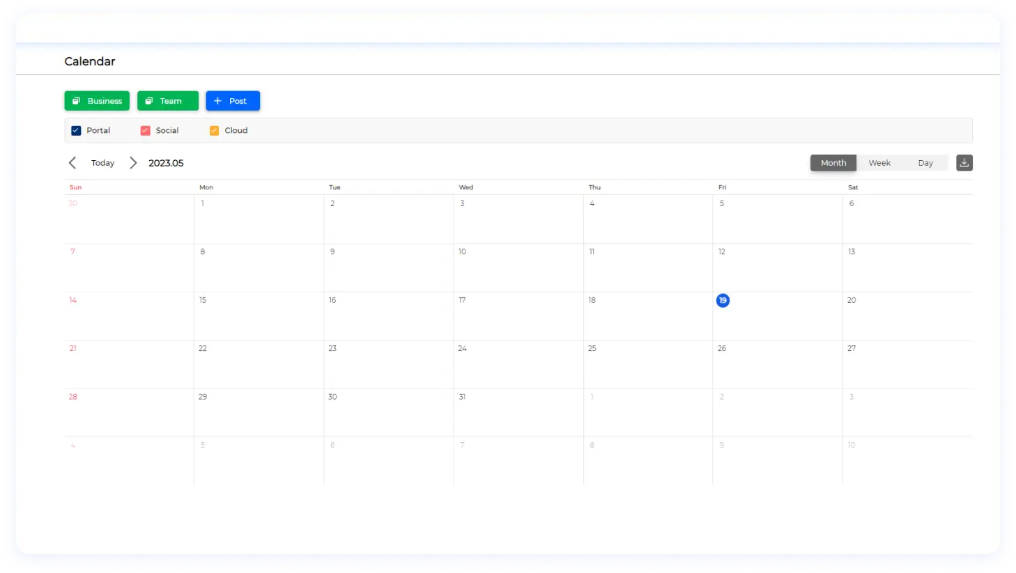 Maximize Efficiency with Filtered Views and Task Variety The calendar enables you to filter tasks and posting data based on businesses and teams, catering to both everyday users and leaders. Seamlessly manage various task types, including social posts, reviews, comments, operational tasks, and cloud management tasks, all within a unified platform.