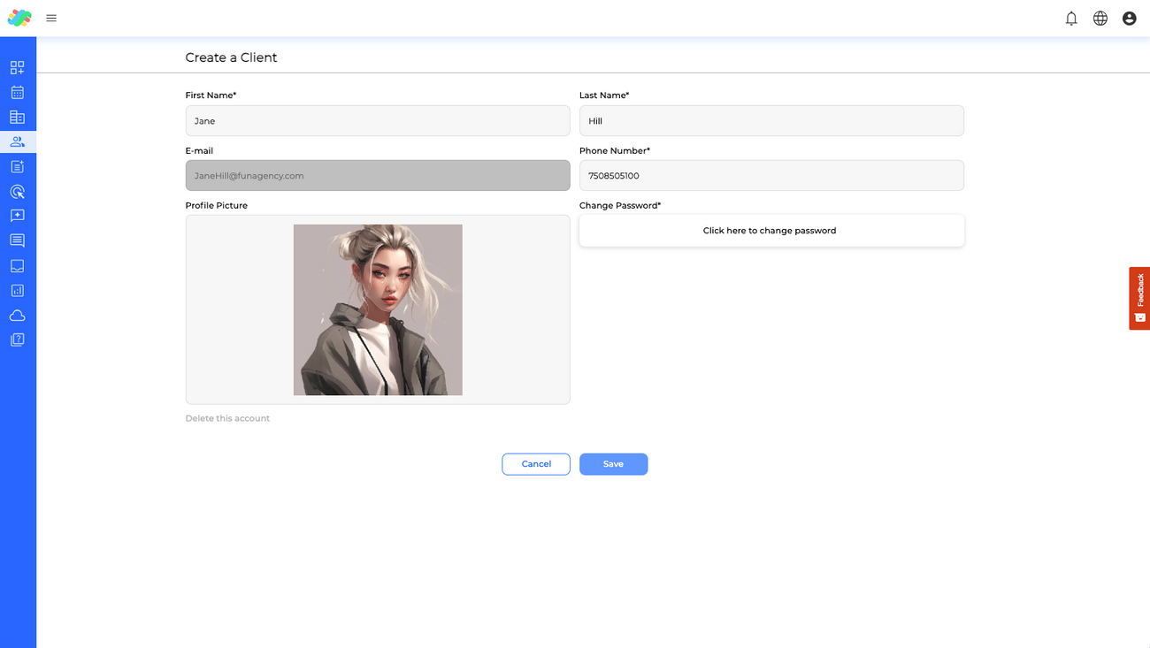 Step 2: Select “My Clients” from the menu. Step 3: Access the client (icono de client) folder, and within here you will see a button that indicates “Add a client” click on this. Step 4: You will then be prompted to enter the client’s information, such as name, last name, email address, phone number, and if you want, a profile image. Step 5: Please be aware that the email you place in here will be used to deliver information regarding the business performance of those businesses this client is associated with, so please make sure that the spelling is correct before saving. Depending on the plan you have within LikeIt you will have permissions to grant them access to our feature called “Client access” which will allow them, the clients to access to the platform. Step 6: Once you are finished, click on “Save” and the client will be created inside your agency. It’s important to remember that the clients will be the main point of contact for the businesses, so it’s important to keep their information updated and accurate.